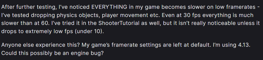 - There could very well be other unintended dependencies of other game mechanics on FPS.